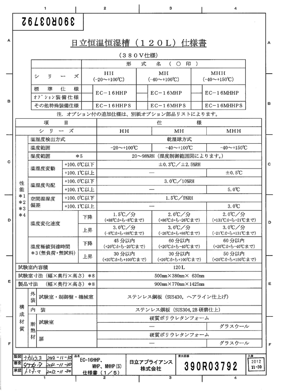 日立環(huán)境試驗設(shè)備的核心部分,采用渦旋式壓縮機(jī),使其在低溫領(lǐng)域也能實現(xiàn)高效和穩(wěn)定的運行。不論是在提高各類產(chǎn)品的可靠性方面還是在食品、化學(xué)、醫(yī)藥領(lǐng)域的實驗研究方面,都能為您提供所需的試驗環(huán)境。